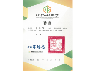 賀!彭成翔律師 再度獲聘擔任經濟部中小企業榮譽律師(115–116年)